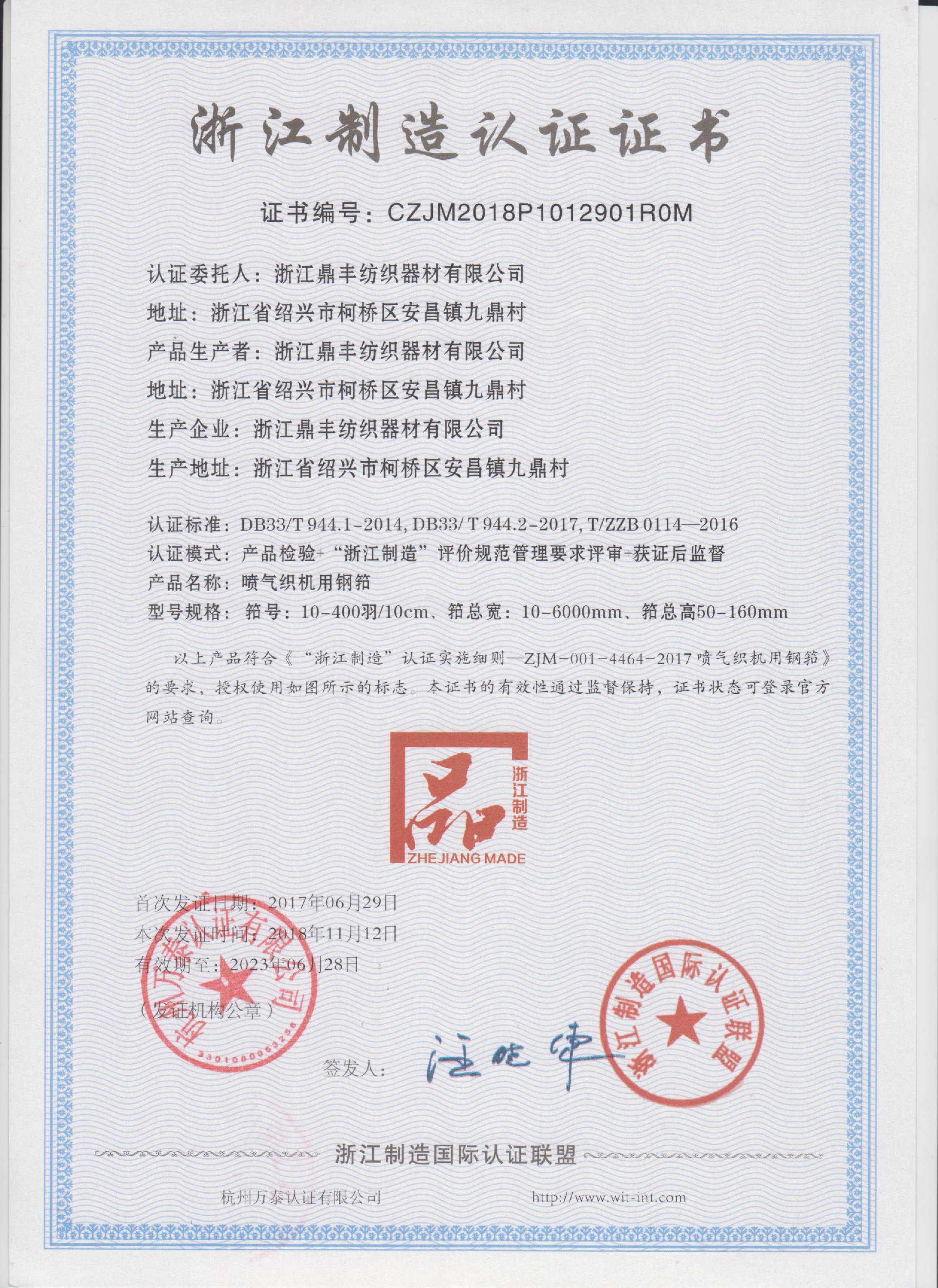 公司現(xiàn)有固定資產(chǎn)6000余萬(wàn)元,員工300余人,現(xiàn)具有年產(chǎn)噴氣異型筘12萬(wàn)米,劍桿筘32萬(wàn)米,噴水筘5萬(wàn)米,綜框20萬(wàn)片,鋼片綜2億片,停經(jīng)片1.5億片, 織軸1.2萬(wàn)套的生產(chǎn)能力。公司“越泉”商標(biāo)被評(píng)為“中國(guó)馳名商標(biāo)”。公司通過ISO9001 :2015國(guó)際質(zhì)量體系認(rèn)證,ISO14001:2015國(guó)際環(huán)境管理體系認(rèn)證,ISO45001:2018國(guó)際職業(yè)健康安全管理體系認(rèn)證,噴氣織機(jī)用鋼筘和織機(jī)用鋁合金綜框獲得“浙江制造”品牌認(rèn)證,公司擁有自營(yíng)進(jìn)出口權(quán),產(chǎn)品暢銷全國(guó)并遠(yuǎn)銷印度、巴基斯坦、土耳其、埃及、哥倫比亞、意大利等國(guó)家和地區(qū)。